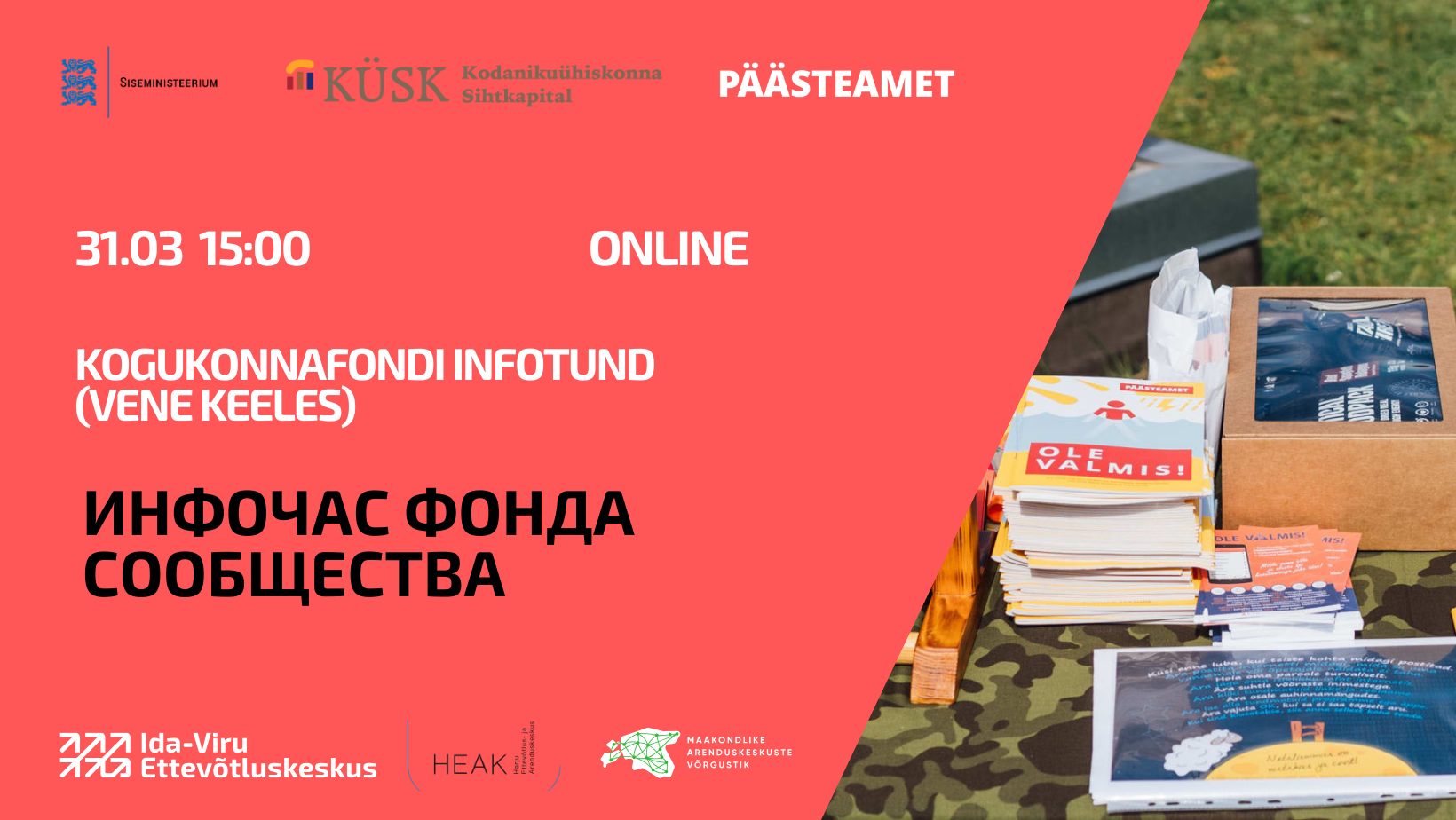 Инфодень проведут консультанты некоммерческих организаций Центров Предпринимательства Ида-Вирумаа и Харьюмаа. В мероприятии также примет участие представитель Спасательного департамента, который расскажет о роли сообществ в подготовке к кризисным ситуациям и укреплении устойчивости сообществ.